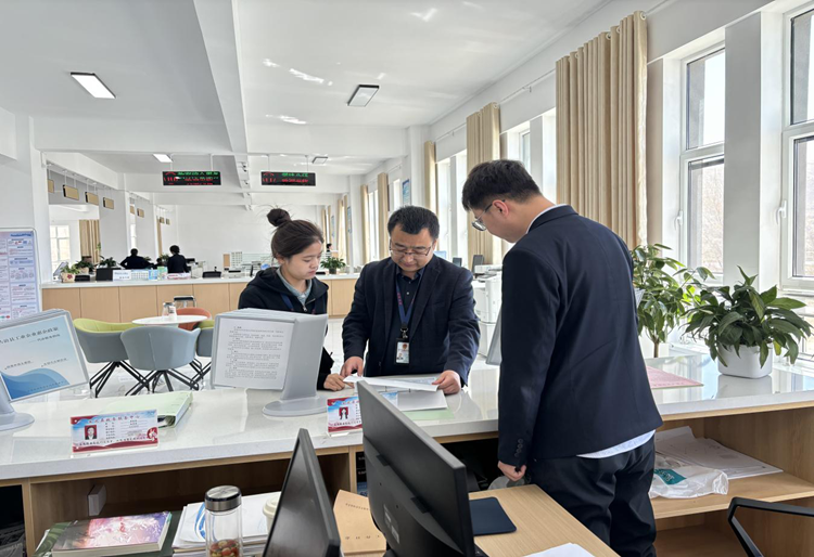 图为民勤县纪委监委干部在县税务局办税服务大厅对企业审批服务、惠企政策落实等工作情况开展监督检查。(马龙 摄)