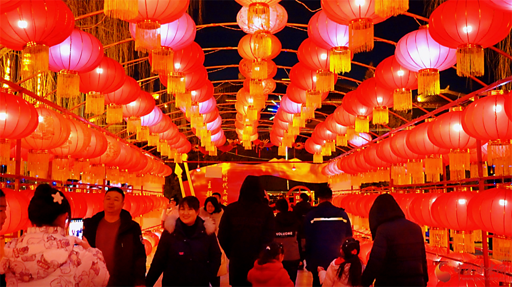 挂满了彩灯、灯笼等新年饰品迎接新年的静宁县各街道、公园