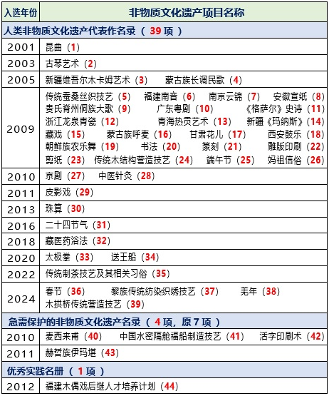 一、我国共有44个入选世界级的非遗项目,总数居世界第一