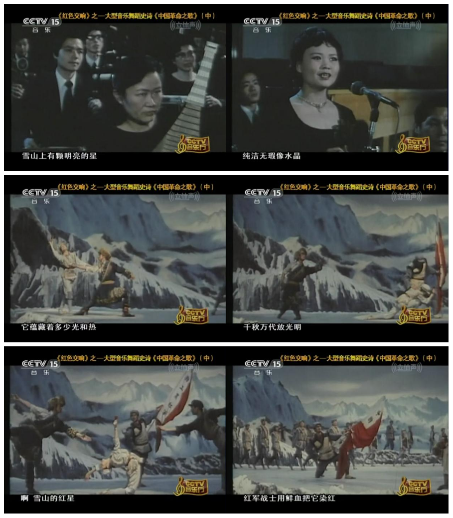 而在音乐与舞蹈的融合道路上,创作于1984年的大型音乐舞蹈史诗《中国革命之歌》,迈向了一种更为宏大的艺术形态。作品融舞蹈、音乐、朗诵与舞台视觉于一体,以全景叙事回溯革命征程。其中第三时期的片段《红军不怕远征难》,以“雪山红星”为核心意象,在交响乐、合唱与舞蹈的交织中,唱响了那段艰苦卓绝的历程。