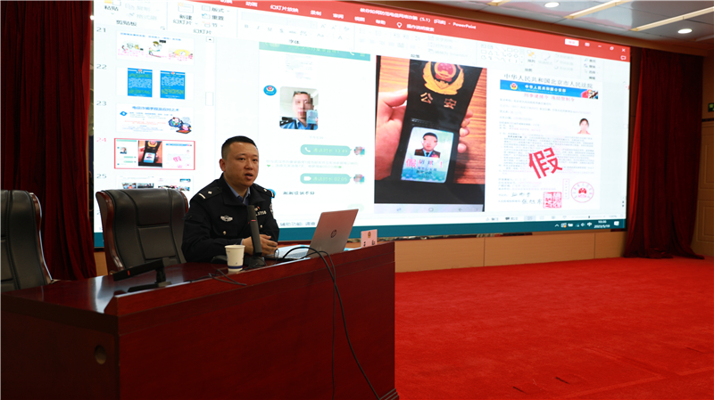 培训中,两名反诈教官结合自身工作实践经验和诈骗犯罪特点规律,采用以案说教的方式,对电信网络诈骗犯罪的形势,电信诈骗常见骗术、花样、手法,识别防范电信诈骗方法等内容进行了讲解。