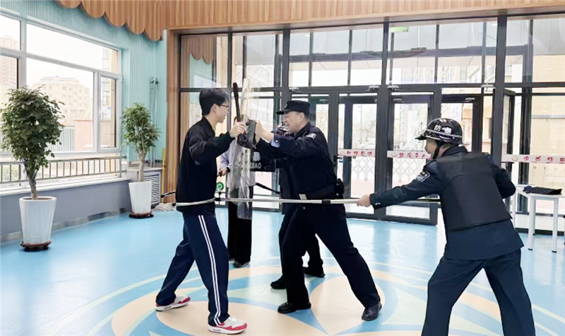 随后,民警现场演示防暴盾牌、钢叉等装备的使用方法,手把手指导安保人员操作:“握盾牌时要站稳脚跟,胳膊用力顶住盾牌,才能有效抵御冲击;使用钢叉时,要对准对方腰部位置,顺势控制,注意避免造成不必要的伤害。”安保人员逐一跟着练习,民警发现动作不标准的地方,便上前一对一纠正,直到所有人都熟练掌握操作要领。