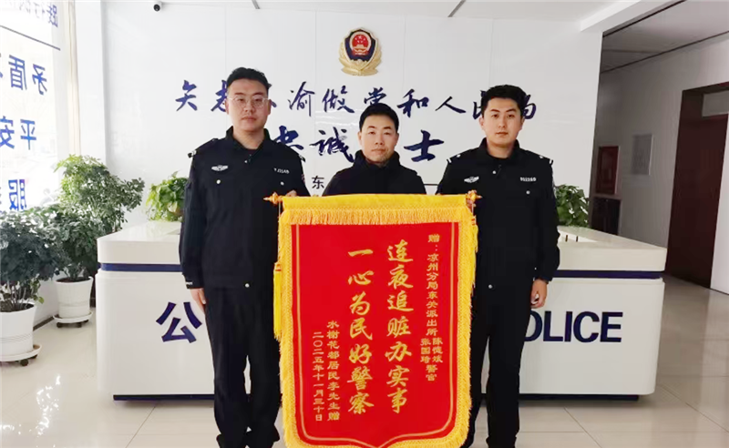 拿到失而复得的手机,李先生激动不已:“真没想到你们能连夜帮我找回来,你们太负责任了!”随后,他也送来一面写有“连夜追赃办实事,一心为民好警察”的锦旗,向民辅警的尽心尽责表达感谢。