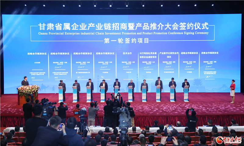 参会企业围绕产业发展、产业链招商、技术创新、金融、工程、供应链、战略合作等领域,共签约产业链合作项目90个,总金额达到214.1亿元。其中,省属企业产业链招商暨产品推介大会签约26个项目,总金额139亿元;嘉峪关市、酒钢集团产业链招商及产品推介会签约64个项目,总金额75.1亿元。