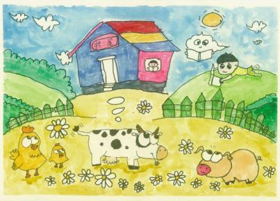 面对这部由中国少年儿童新闻出版总社出版的《“我的书屋·我的梦”——2019年农村少年儿童阅读实践活动优秀作品集》,让人欣喜的是,它不但有文字,还有很多入选的画作,孩子们运用了大胆的色彩、大胆的想象、大胆的线条,恣肆地描绘着他们的梦和憧憬,这些梦根植于他们生活的山乡旷野,又呼应着远方、星辰与大海。我尤其记得其中的一幅,那是一座高耸的书塔,那种拔地而起、直上云霄的气势,是一种象征,是一种隐喻,是这一代孩子想站到巨人肩上的渴望,是他们对祖国明天最美好的祝福和期待,也是中华民族必将走向复兴的昭示。