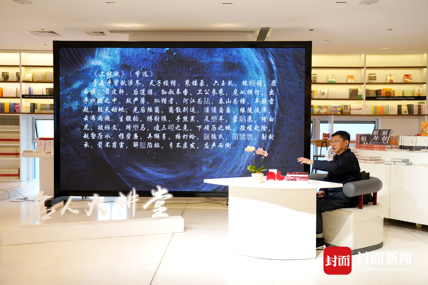 作为资深作家,阿来在讲述司马相如其人以及他所处的时代特点、文史知识同时,还重点从文学的角度,讲解了相关文史记载文章,还特别以《子虚赋》《上林赋》等司马相如的作品为例,逐字逐句进行分析“赋”这个文体的优、缺点。比如在《上林赋》中,司马相如写楚国之子虚先生出使齐国,子虚向乌有先生讲述随齐王出猎,齐王问及楚国,子虚极力铺排楚国之广大丰饶,以至云梦不过是其后花园之小小一角。乌有不服,便以齐国之大海名山、异方殊类,傲视子虚。
