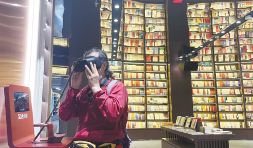 中图云创智能科技(北京)有限公司总经理邵丹介绍,“书店中的元宇宙世界”由“5G新阅读体验区”和“元宇宙空间”两大核心板块组成。利用270度裸眼3D大屏构建现实里的全景沉浸阅读空间,同时充分融合VR、MR等新技术与沉浸式终端设备,首次在线下书店打造全真虚拟、混合现实的体验式阅读场景。