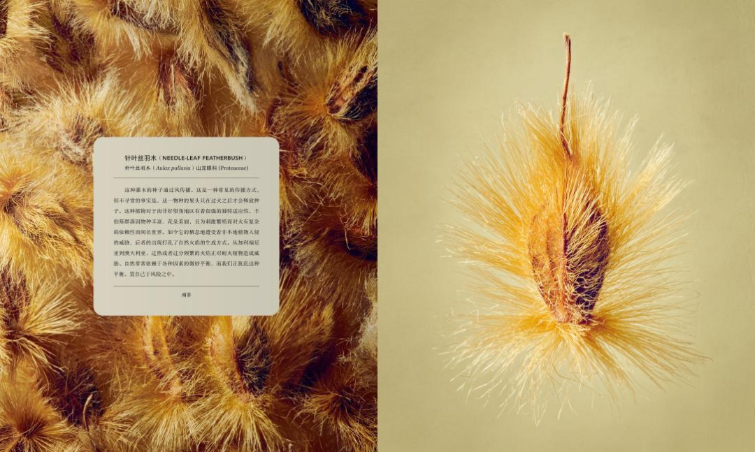 随后,植物园耗时6个月,从3500份标本中精心筛选出100种植物果实与种子。列文·比斯将这些摄影对象放大至80倍,捕捉到植物表面丰富多样的细节,照片的精细程度超乎想象。每张图片还配有一段简洁的科普文字,不仅反映了100多年来植物的采集状况,展示了种子的传播方式,还介绍了人类对植物材料的利用方法。