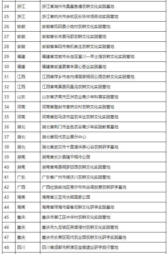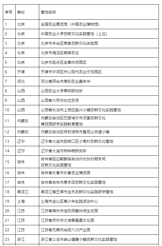 农耕文化实践营地推荐名单(第一批)