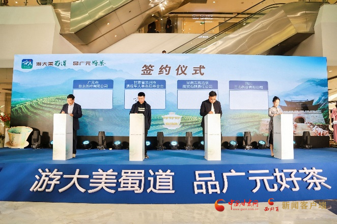 活动现场,两地多家企业签订战略合作协议,多家旅行社共同开启“游大美蜀道 品广元好茶”旅游线路产品上架销售仪式。
