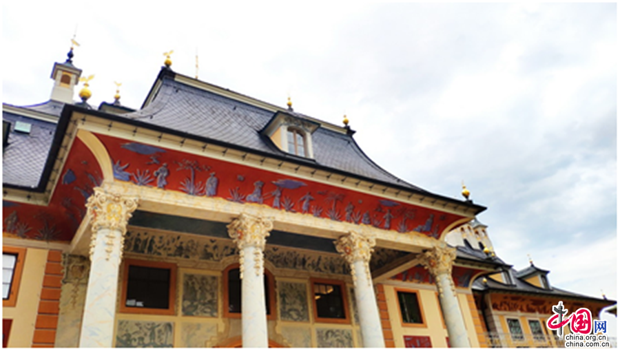 在此二宫兴建的年代,“中国风”在欧洲正处于鼎盛时期。那时的中国是瓷器、丝绸之都,又是人们所臆想的文明、和谐社会的代表。皮尔尼茨宫当时的主人,萨克森选帝侯及波兰国王奥古斯特二世,也即奥古斯特强力王,是“中国风”忠实的拥趸。正是他在位之时,“中国风”在萨克森王室贵族蔚然成风。以仿制中国瓷起家的迈森瓷器厂也在彼时诞生,后来蜚声欧洲,成为硬瓷制造者的杰出代表,此处不表。